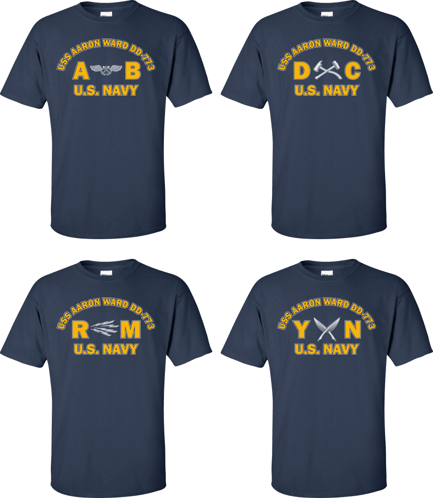 Due to disruptions in supply chains, this design will be embroidered on a Champion, Gildan, Jerzees or comparable brand.Proudly display your ship and rate with our top quality USS AARON WARD DD-773 Rates t-shirts, sweatshirts, and hoodies. These fine U.S. Navy apparel items will make you the envy of your veteran buddies, or will make a fine gift! Our USS AARON WARD DD-773 shirts are proudly printed in the USA!