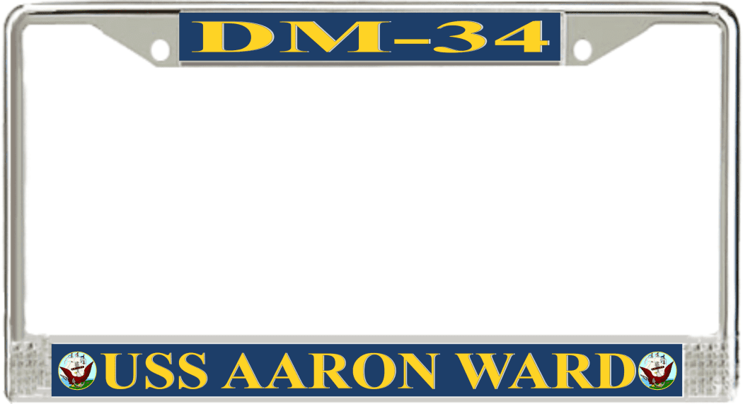 USS Aaron Ward DM-34 License Plate FrameThis USS Aaron Ward DM-34 License Plate Frame is proudly made in the USA at our facilities in Scottsboro, Alabama. Each of our MilitaryBest U.S. Navy Frames feature top and bottom Poly Coated Aluminum strips that are printed using sublimation which gives these quality automobile military frames a beautiful high gloss finish.