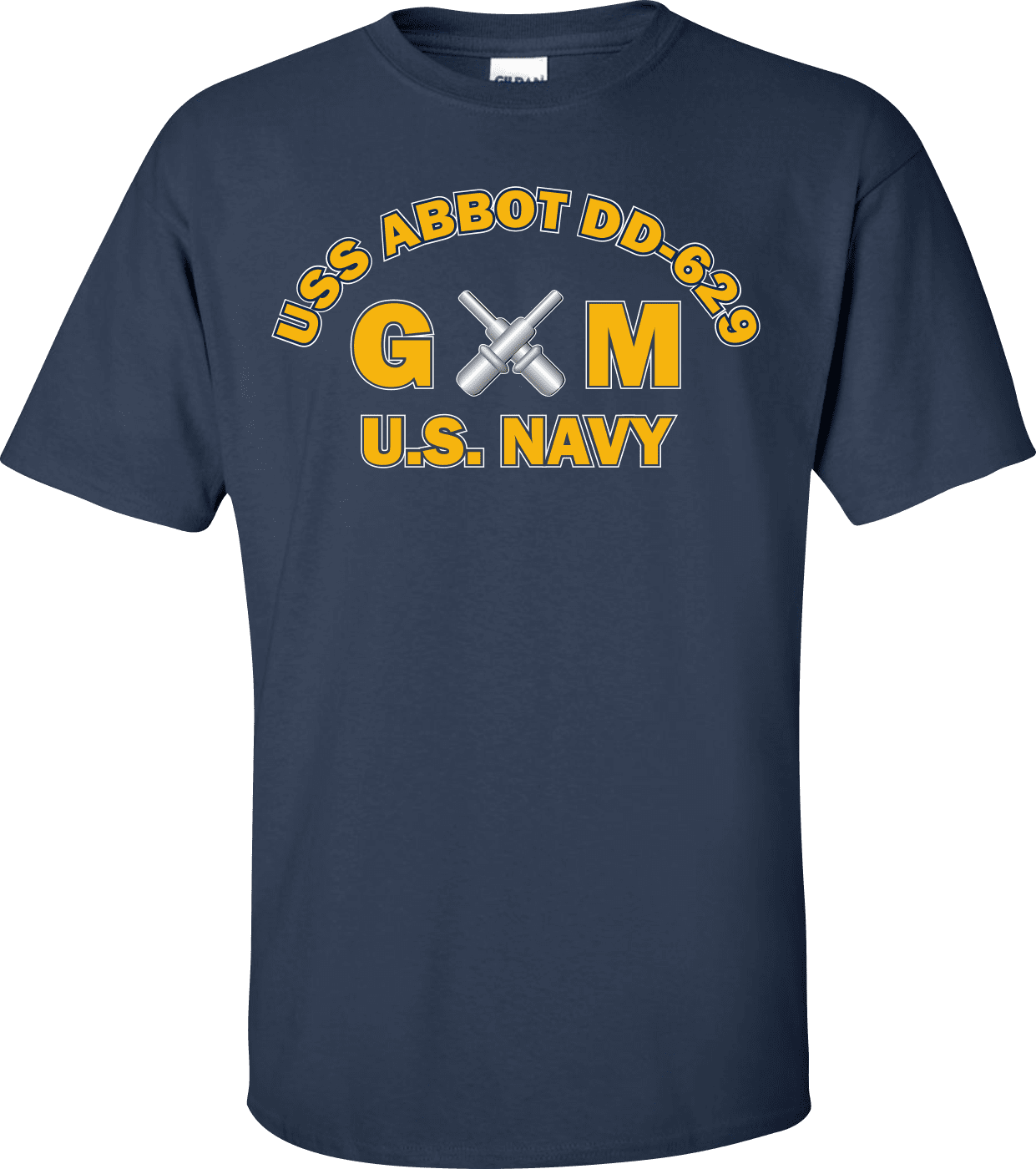 MilitaryBest is proud to offer this USS ABBOT DD-629 Rate GM Gunners Mate T-Shirt. This shirt is available as a 100% cotton t-shirt or a 100% polyester men’s or women’s moisture wicking t-shirt. Each shirt is proudly printed in the USA.