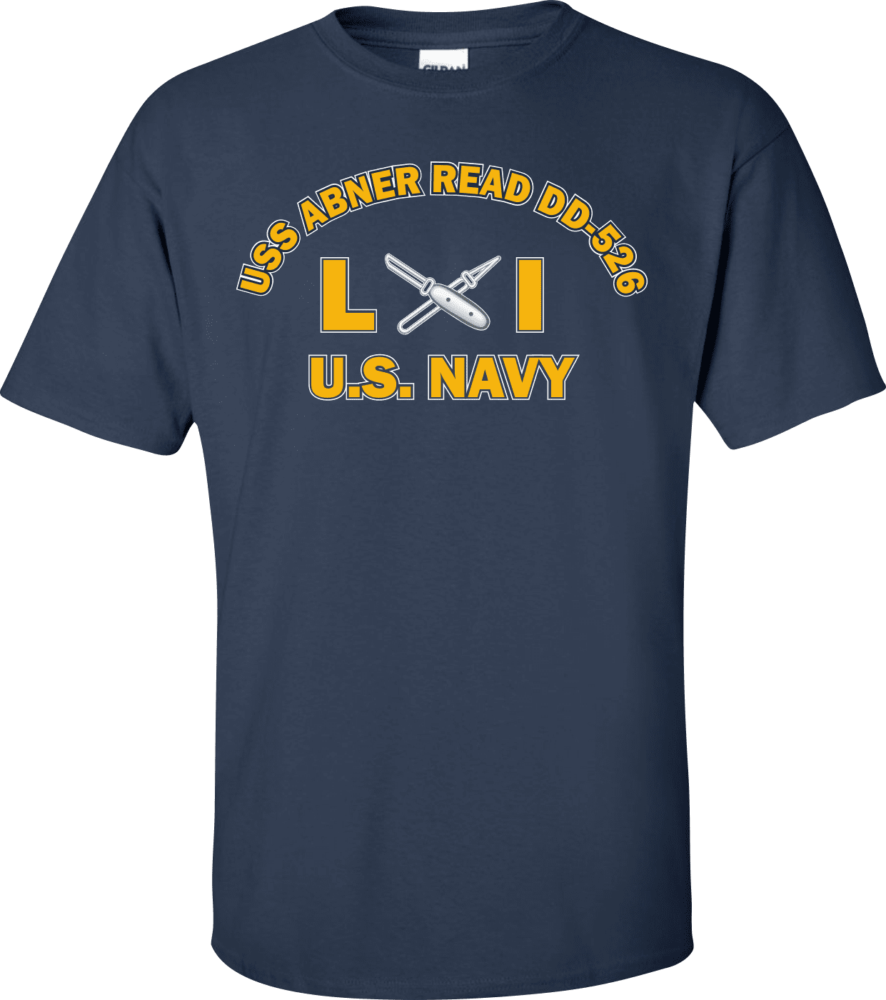 MilitaryBest is proud to offer this USS ABNER READ DD-526 Rate LI Lithographer T-Shirt. This shirt is available as a 100% cotton t-shirt or a 100% polyester men’s or women’s moisture wicking t-shirt. Each shirt is proudly printed in the USA.
