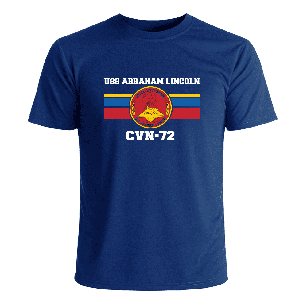 MilitaryBest is proud to offer this U.S. Navy Aircraft Carrier Crest T-Shirt. Each design is offered in Navy Blue. This fine USS Abraham Lincoln CVN-72 Crest T-Shirt is proudly printed in the USA. The quality of all of our Military products is guaranteed. Unless there is a defect in workmanship or material, these shirts are unreturnable.A percentage of the sale of each MilitaryBest item is forwarded to the licensing departments of each respective branch of service in support of the MWR (Morale, Welfare, & Recreation) program. These payments are made by either ALL4U LLC or the wholesaler from where the item originated. Our team thanks you for your service and your support of these programs.