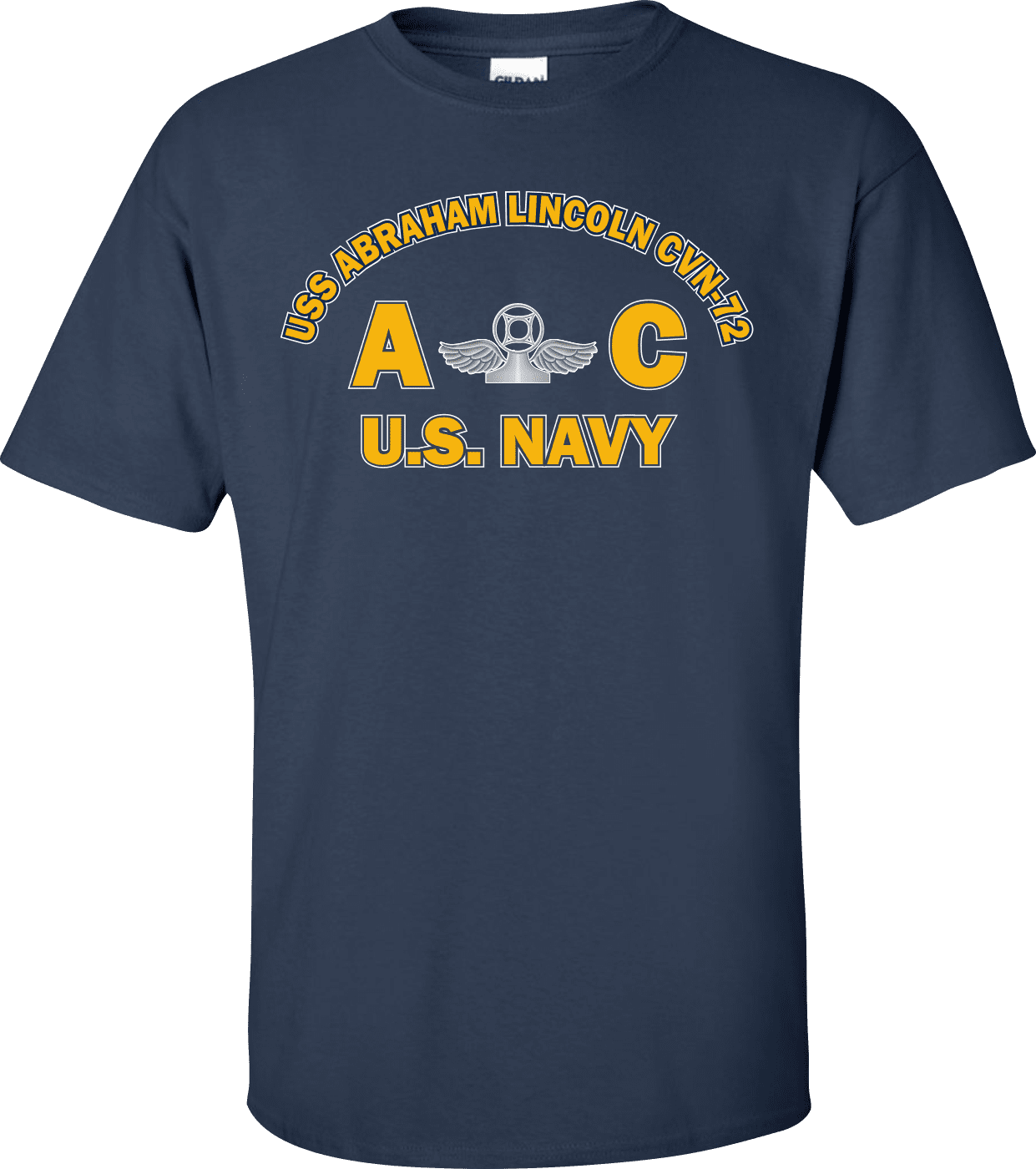 MilitaryBest is proud to offer this USS ABRAHAM LINCOLN CVN-72 Rate AC Air Traffic Controller T-Shirt. This shirt is available as a 100% cotton t-shirt or a 100% polyester men’s or women’s moisture wicking t-shirt. Each shirt is proudly printed in the USA.