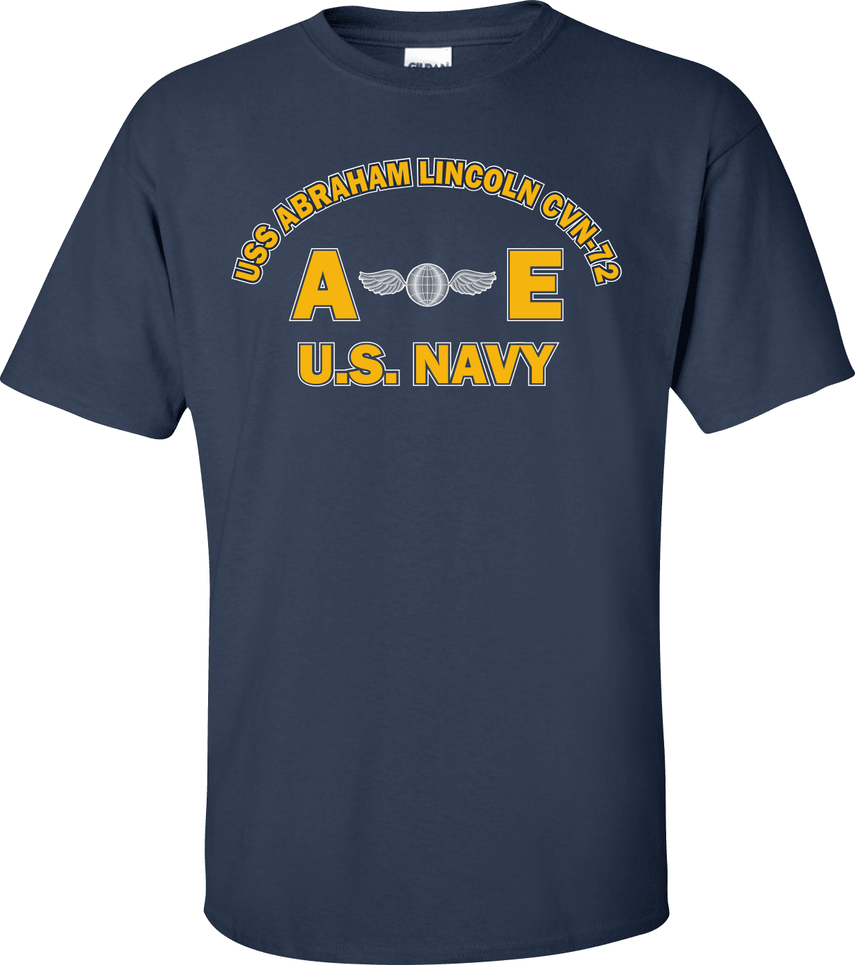 MilitaryBest is proud to offer this USS ABRAHAM LINCOLN CVN-72 Rate AE Aviation Electricians Mate T-Shirt. This shirt is available as a 100% cotton t-shirt or a 100% polyester men’s or women’s moisture wicking t-shirt. Each shirt is proudly printed in the USA.