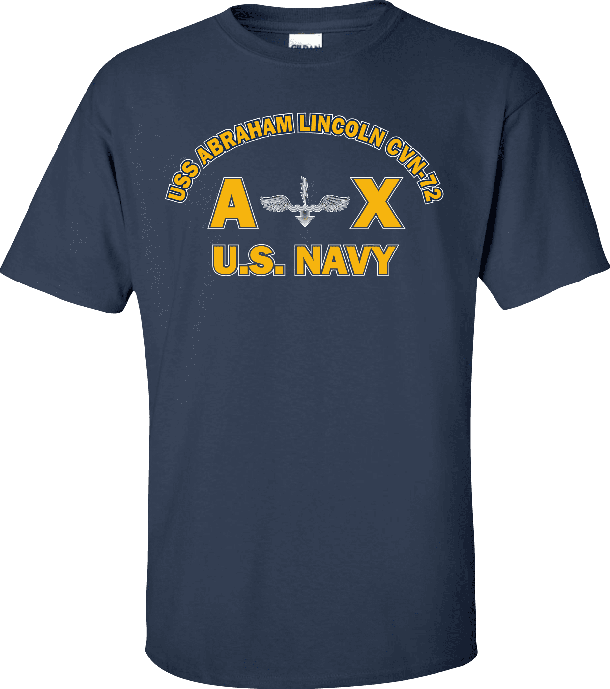 MilitaryBest is proud to offer this USS ABRAHAM LINCOLN CVN-72 Rate AX Antisubmarine Warfare Technician T-Shirt. This shirt is available as a 100% cotton t-shirt or a 100% polyester men’s or women’s moisture wicking t-shirt. Each shirt is proudly printed in the USA.