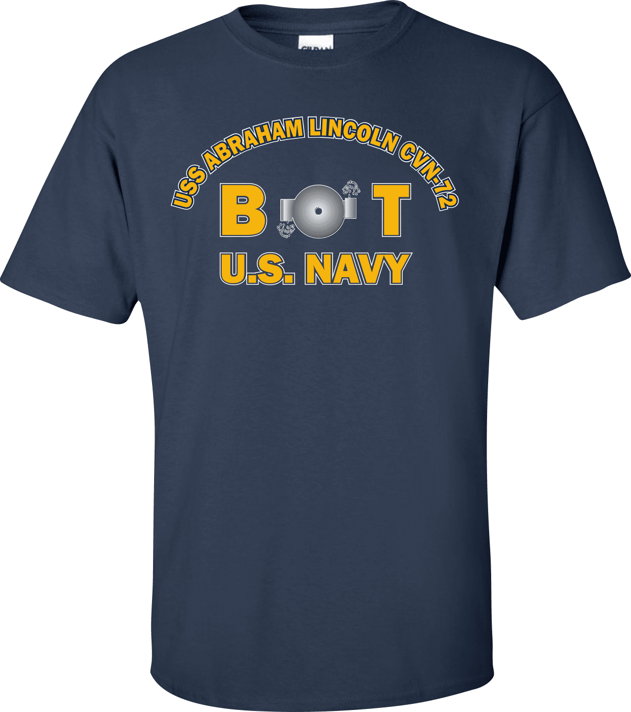 MilitaryBest is proud to offer this USS ABRAHAM LINCOLN CVN-72 Rate BT Boiler Technician T-Shirt. This shirt is available as a 100% cotton t-shirt or a 100% polyester men’s or women’s moisture wicking t-shirt. Each shirt is proudly printed in the USA.
