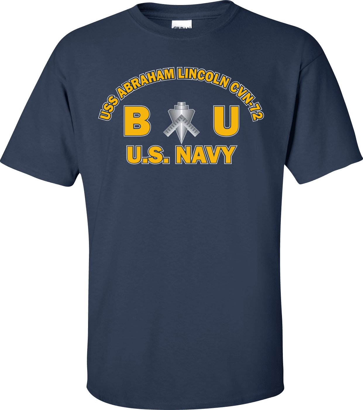 MilitaryBest is proud to offer this USS ABRAHAM LINCOLN CVN-72 Rate BU Builder T-Shirt. This shirt is available as a 100% cotton t-shirt or a 100% polyester men’s or women’s moisture wicking t-shirt. Each shirt is proudly printed in the USA.