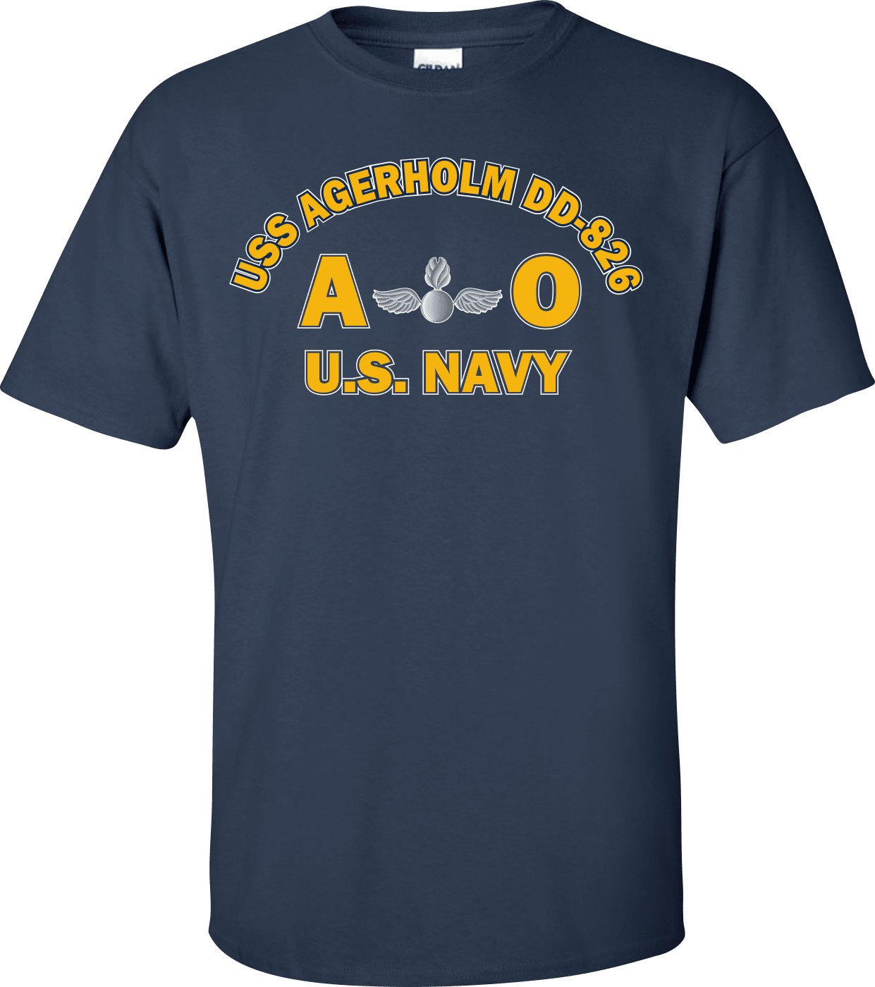 MilitaryBest is proud to offer this USS AGERHOLM DD-826 Rate AO Aviation Ordnanceman T-Shirt. This shirt is available as a 100% cotton t-shirt or a 100% polyester men’s or women’s moisture wicking t-shirt. Each shirt is proudly printed in the USA.