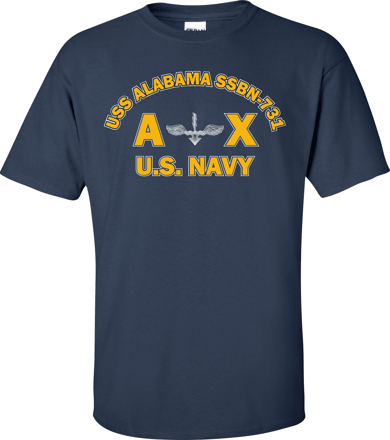 MilitaryBest is proud to offer this USS ALABAMA SSBN-731 Rate AX Antisubmarine Warfare Technician T-Shirt. This shirt is available as a 100% cotton t-shirt or a 100% polyester men’s or women’s moisture wicking t-shirt. Each shirt is proudly printed in the USA.