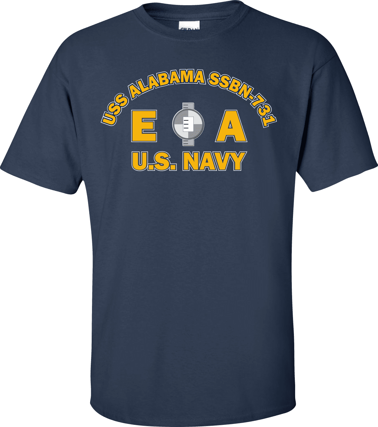 MilitaryBest is proud to offer this USS ALABAMA SSBN-731 Rate EA Engineering Aide T-Shirt. This shirt is available as a 100% cotton t-shirt or a 100% polyester men’s or women’s moisture wicking t-shirt. Each shirt is proudly printed in the USA.