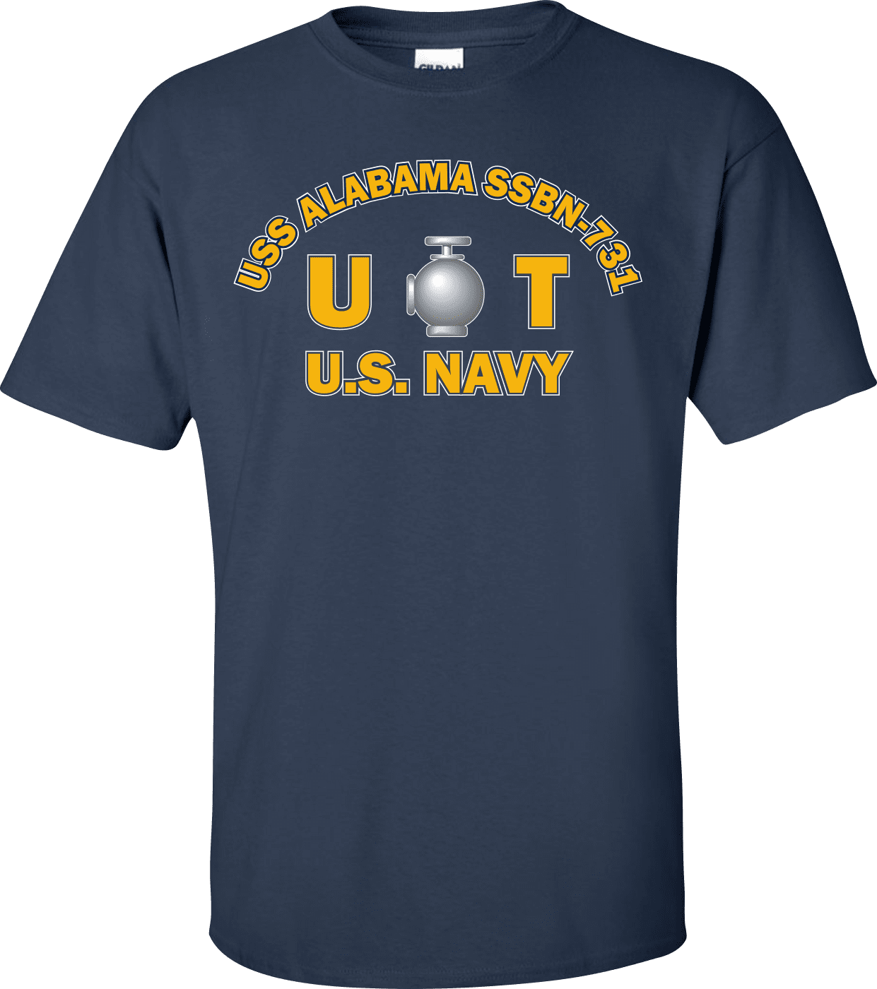 MilitaryBest is proud to offer this USS ALABAMA SSBN-731 Rate UT Utilitiesman T-Shirt. This shirt is available as a 100% cotton t-shirt or a 100% polyester men’s or women’s moisture wicking t-shirt. Each shirt is proudly printed in the USA.