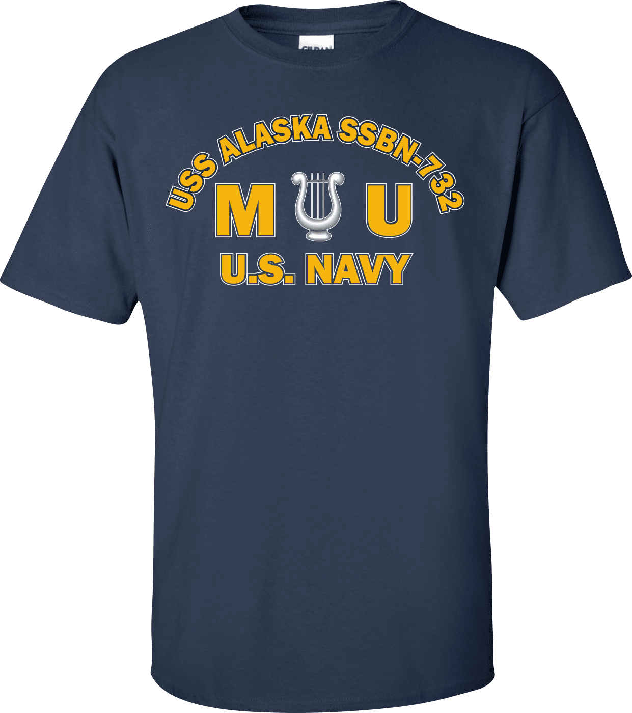 MilitaryBest is proud to offer this USS ALASKA SSBN-732 Rate MU Musician T-Shirt. This shirt is available as a 100% cotton t-shirt or a 100% polyester men’s or women’s moisture wicking t-shirt. Each shirt is proudly printed in the USA.
