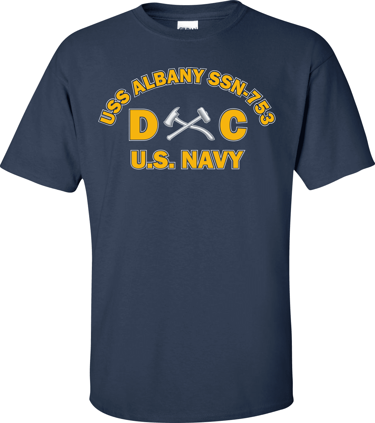 MilitaryBest is proud to offer this USS ALBANY SSN-753 Rate DC Damage Controlman T-Shirt. This shirt is available as a 100% cotton t-shirt or a 100% polyester men’s or women’s moisture wicking t-shirt. Each shirt is proudly printed in the USA.
