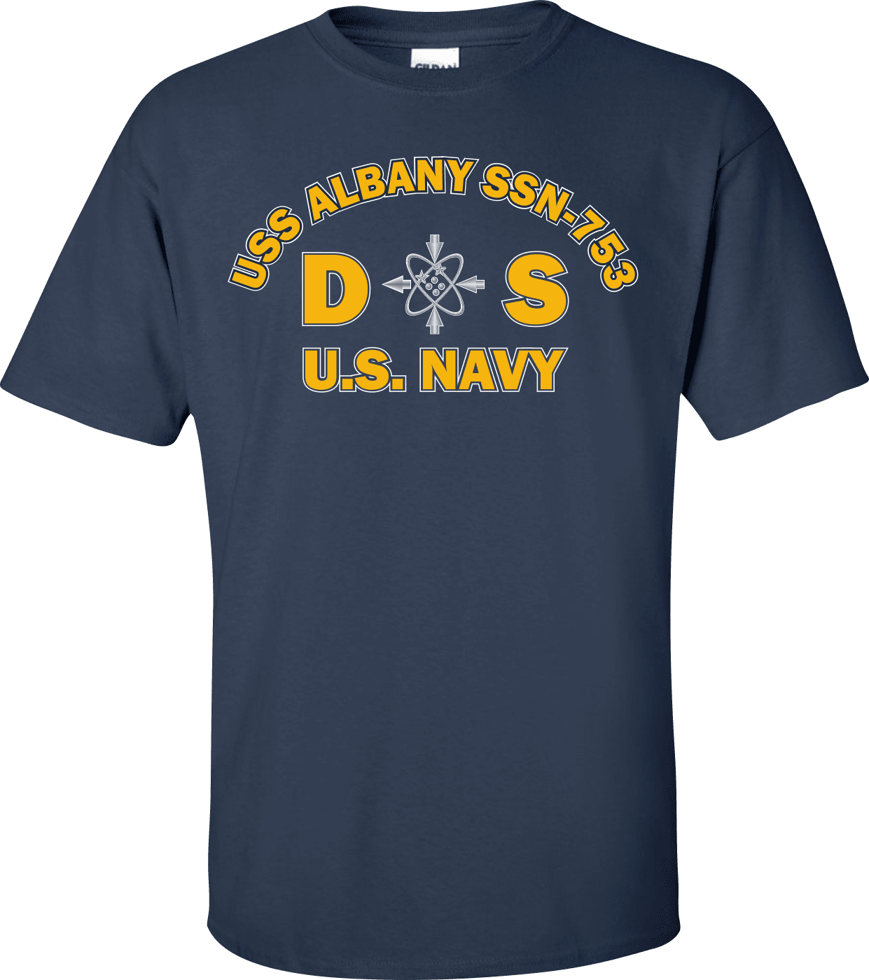 MilitaryBest is proud to offer this USS ALBANY SSN-753 Rate DS Data Systems Technician T-Shirt. This shirt is available as a 100% cotton t-shirt or a 100% polyester men’s or women’s moisture wicking t-shirt. Each shirt is proudly printed in the USA.