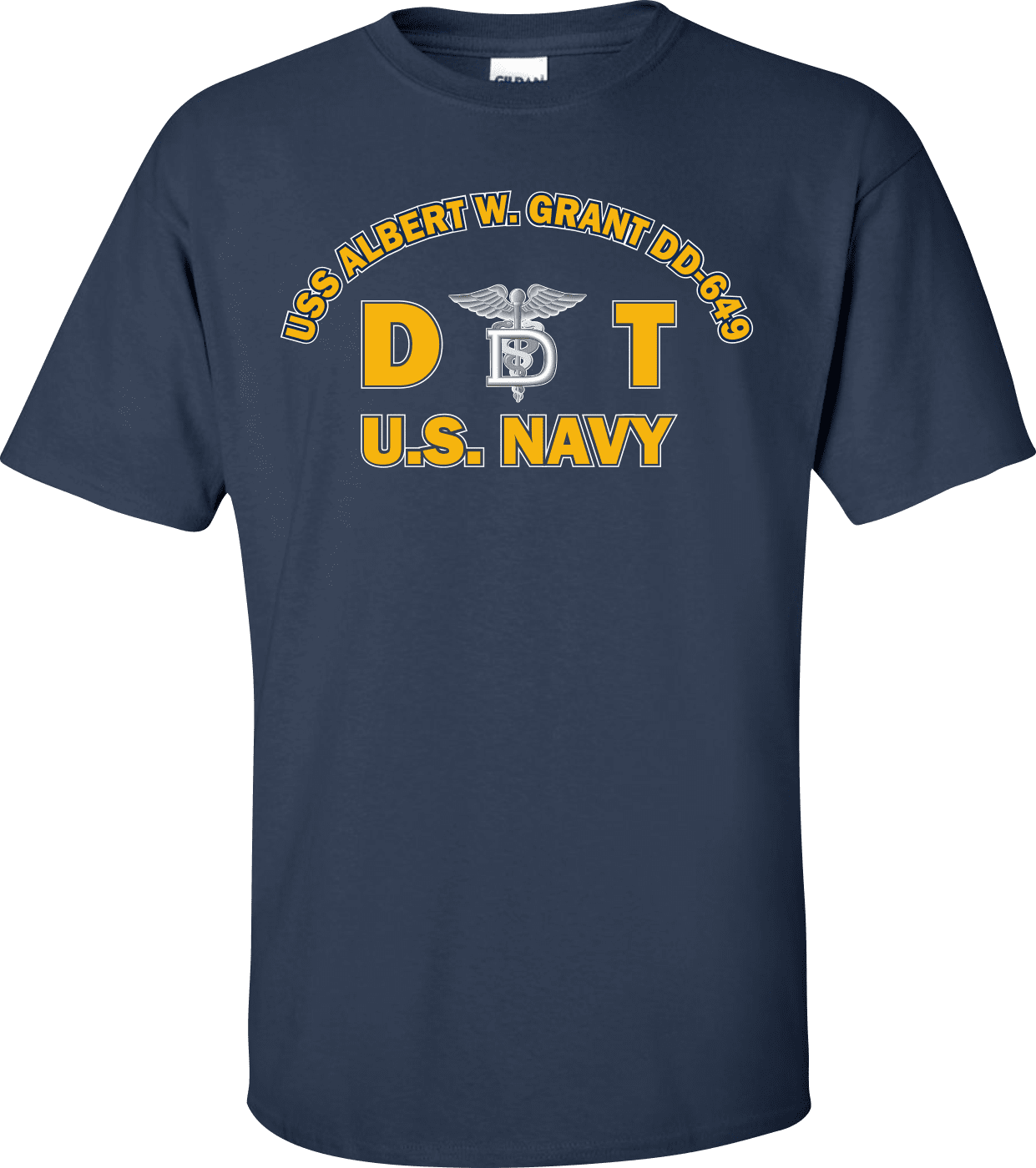 MilitaryBest is proud to offer this USS ALBERT W. GRANT DD-649 Rate DT Dental Technician T-Shirt. This shirt is available as a 100% cotton t-shirt or a 100% polyester men’s or women’s moisture wicking t-shirt. Each shirt is proudly printed in the USA.