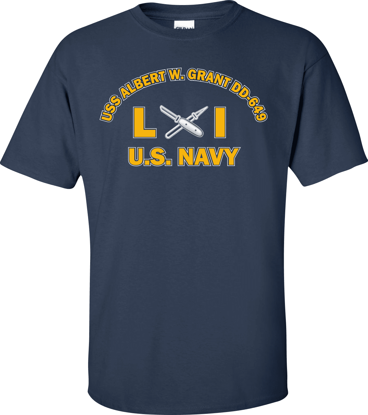MilitaryBest is proud to offer this USS ALBERT W. GRANT DD-649 Rate LI Lithographer T-Shirt. This shirt is available as a 100% cotton t-shirt or a 100% polyester men’s or women’s moisture wicking t-shirt. Each shirt is proudly printed in the USA.