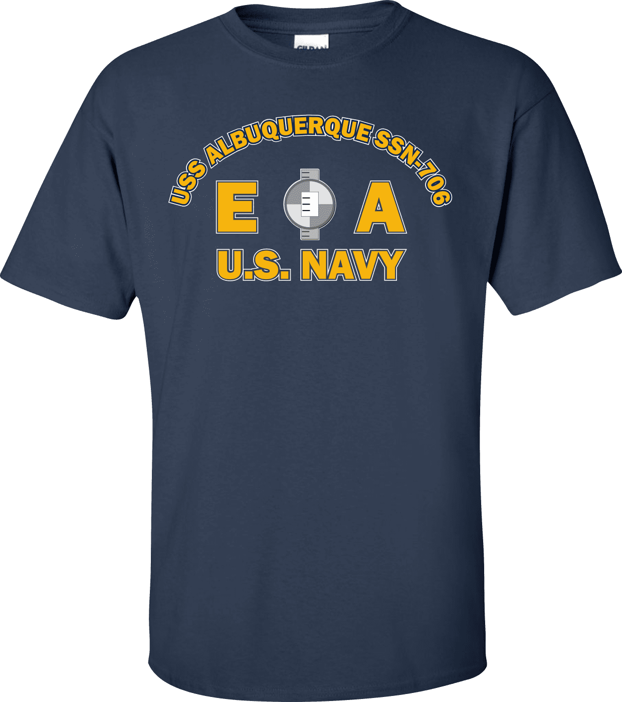 MilitaryBest is proud to offer this USS ALBUQUERQUE SSN-706 Rate EA Engineering Aide T-Shirt. This shirt is available as a 100% cotton t-shirt or a 100% polyester men’s or women’s moisture wicking t-shirt. Each shirt is proudly printed in the USA.