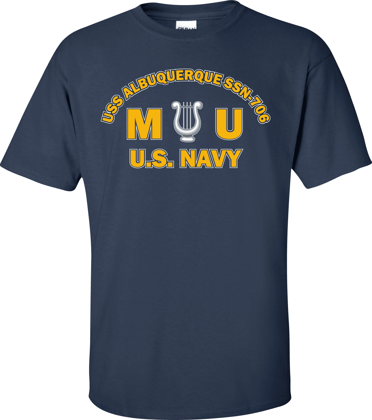 MilitaryBest is proud to offer this USS ALBUQUERQUE SSN-706 Rate MU Musician T-Shirt. This shirt is available as a 100% cotton t-shirt or a 100% polyester men’s or women’s moisture wicking t-shirt. Each shirt is proudly printed in the USA.