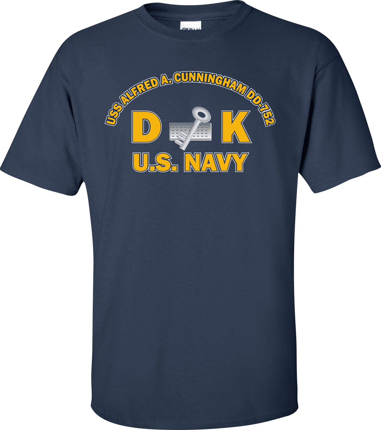 MilitaryBest is proud to offer this USS ALFRED A. CUNNINGHAM DD-752 Rate DK Disbursing Clerk T-Shirt. This shirt is available as a 100% cotton t-shirt or a 100% polyester men’s or women’s moisture wicking t-shirt. Each shirt is proudly printed in the USA.