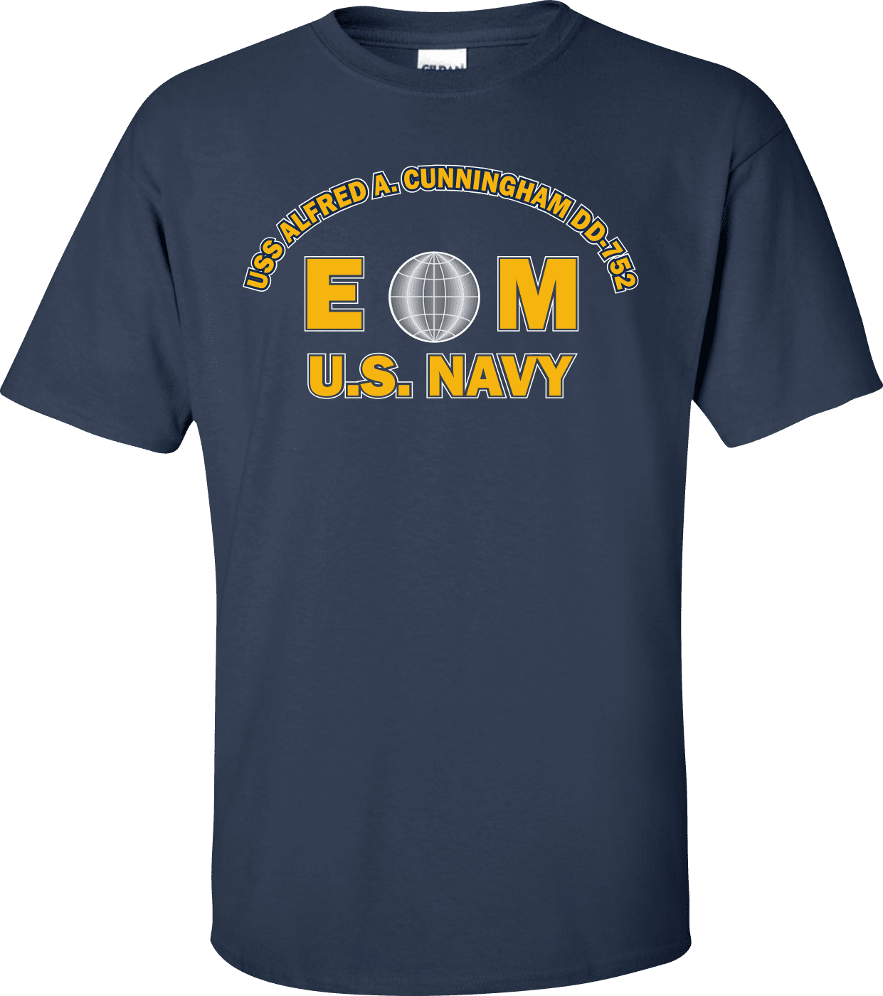 MilitaryBest is proud to offer this USS ALFRED A. CUNNINGHAM DD-752 Rate EM Electricians Mate T-Shirt. This shirt is available as a 100% cotton t-shirt or a 100% polyester men’s or women’s moisture wicking t-shirt. Each shirt is proudly printed in the USA.