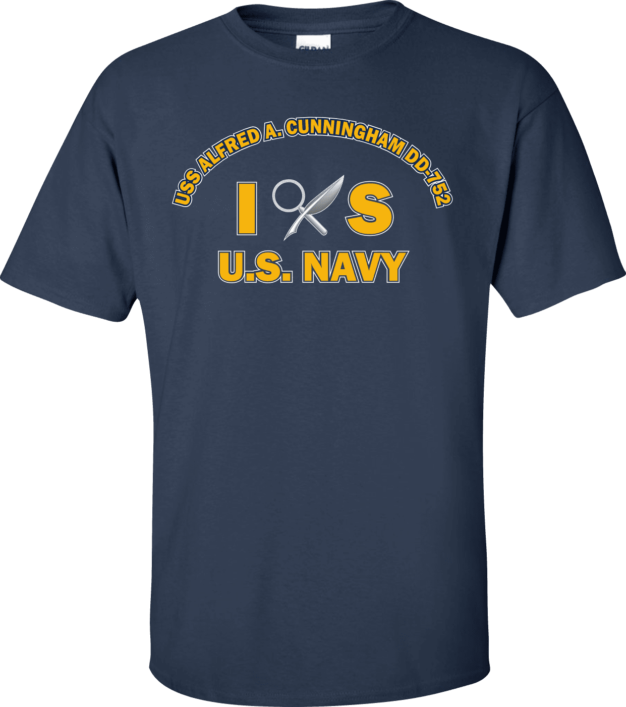 MilitaryBest is proud to offer this USS ALFRED A. CUNNINGHAM DD-752 Rate IS Intelligence Specialist T-Shirt. This shirt is available as a 100% cotton t-shirt or a 100% polyester men’s or women’s moisture wicking t-shirt. Each shirt is proudly printed in the USA.