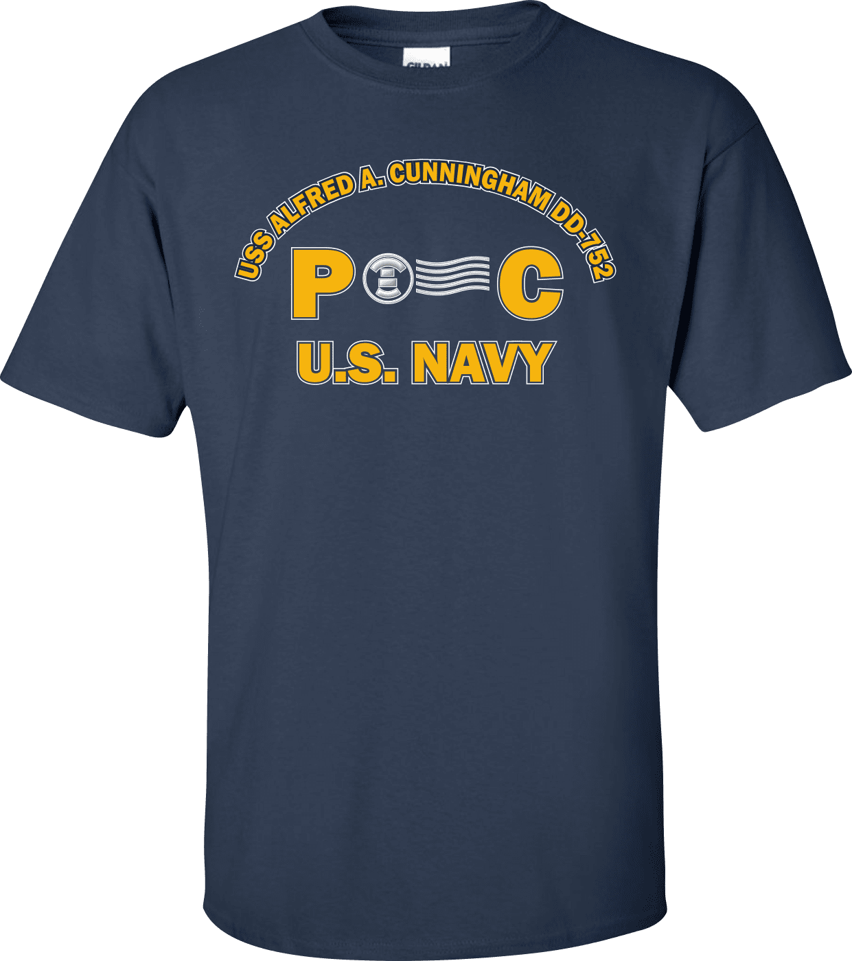 MilitaryBest is proud to offer this USS ALFRED A. CUNNINGHAM DD-752 Rate PC Postal Clerk T-Shirt. This shirt is available as a 100% cotton t-shirt or a 100% polyester men’s or women’s moisture wicking t-shirt. Each shirt is proudly printed in the USA.