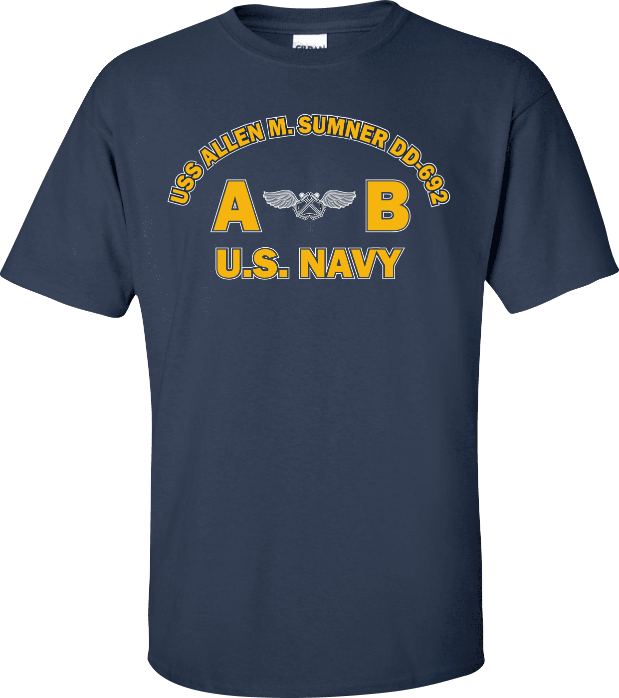 MilitaryBest is proud to offer this USS ALLEN M. SUMNER DD-692 Rate AB Aviation Boatswains Mate T-Shirt. This shirt is available as a 100% cotton t-shirt or a 100% polyester men’s or women’s moisture wicking t-shirt. Each shirt is proudly printed in the USA.