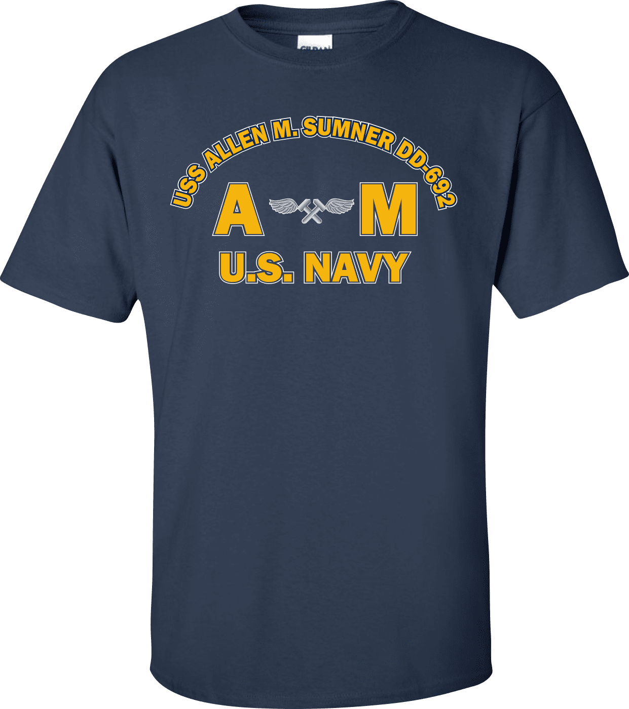 MilitaryBest is proud to offer this USS ALLEN M. SUMNER DD-692 Rate AM Aviation Structural Mechanic T-Shirt. This shirt is available as a 100% cotton t-shirt or a 100% polyester men’s or women’s moisture wicking t-shirt. Each shirt is proudly printed in the USA.