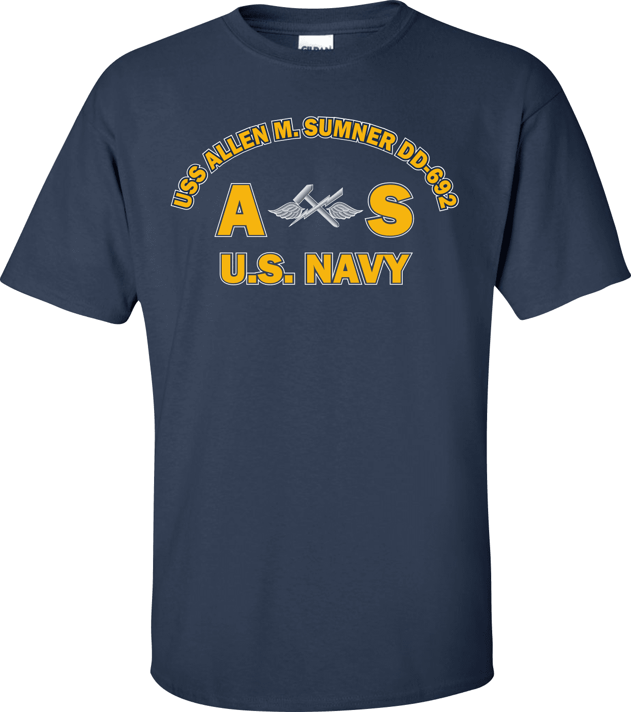 MilitaryBest is proud to offer this USS ALLEN M. SUMNER DD-692 Rate AS Aviation Support Equipment Technician T-Shirt. This shirt is available as a 100% cotton t-shirt or a 100% polyester men’s or women’s moisture wicking t-shirt. Each shirt is proudly printed in the USA.