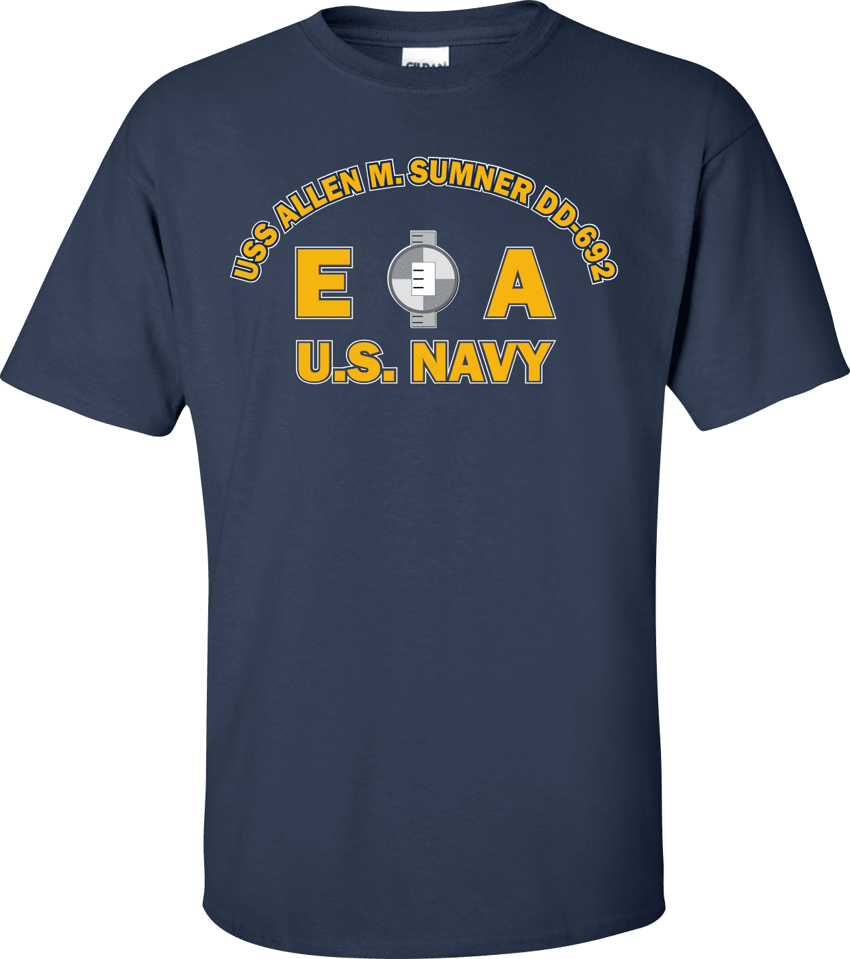MilitaryBest is proud to offer this USS ALLEN M. SUMNER DD-692 Rate EA Engineering Aide T-Shirt. This shirt is available as a 100% cotton t-shirt or a 100% polyester men’s or women’s moisture wicking t-shirt. Each shirt is proudly printed in the USA.