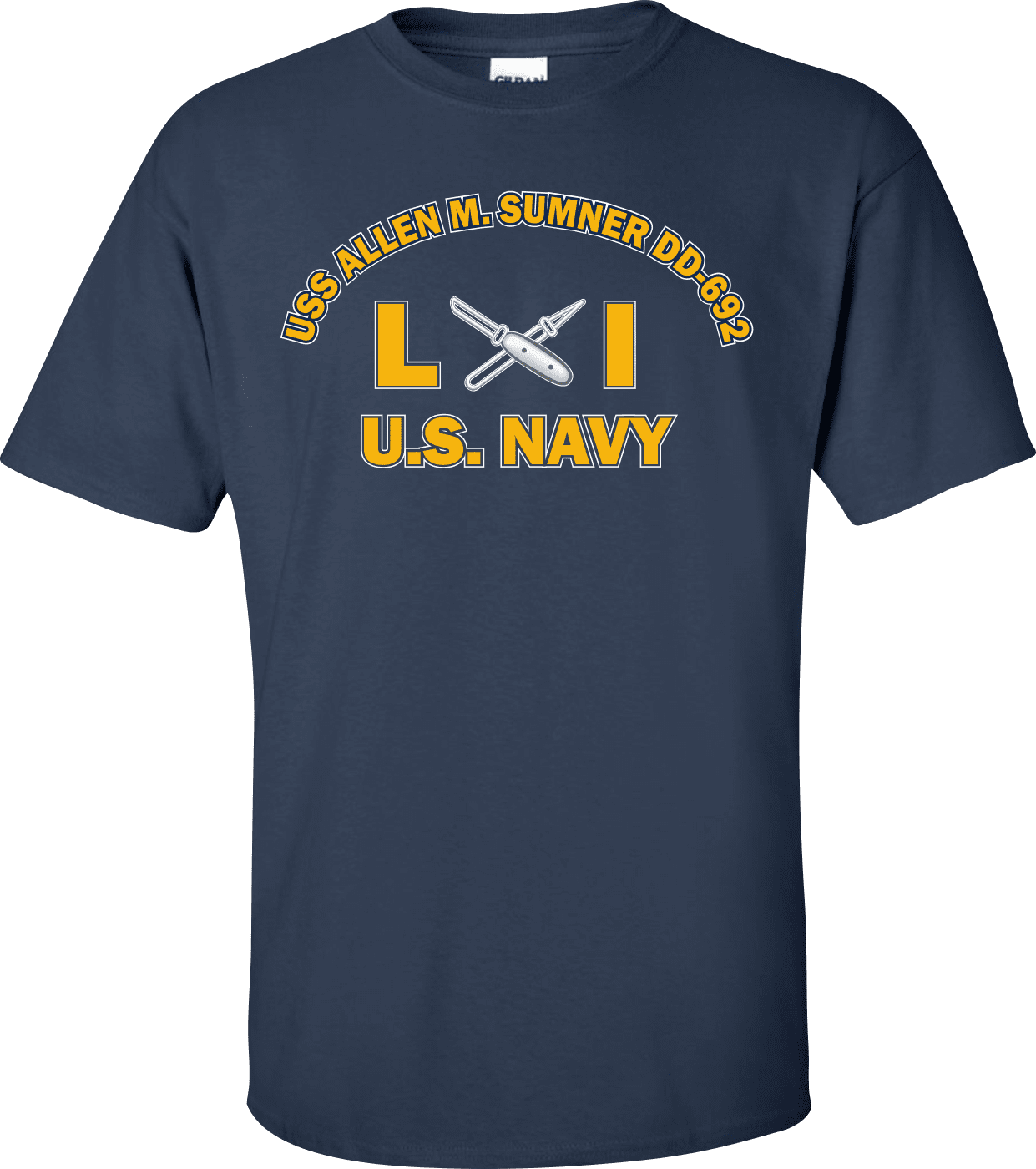 MilitaryBest is proud to offer this USS ALLEN M. SUMNER DD-692 Rate LI Lithographer T-Shirt. This shirt is available as a 100% cotton t-shirt or a 100% polyester men’s or women’s moisture wicking t-shirt. Each shirt is proudly printed in the USA.