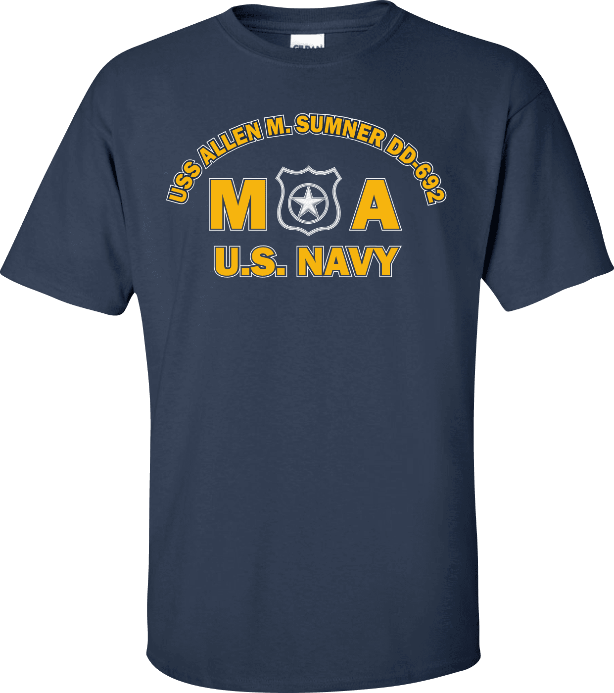 MilitaryBest is proud to offer this USS ALLEN M. SUMNER DD-692 Rate MA Master At Arms T-Shirt. This shirt is available as a 100% cotton t-shirt or a 100% polyester men’s or women’s moisture wicking t-shirt. Each shirt is proudly printed in the USA.