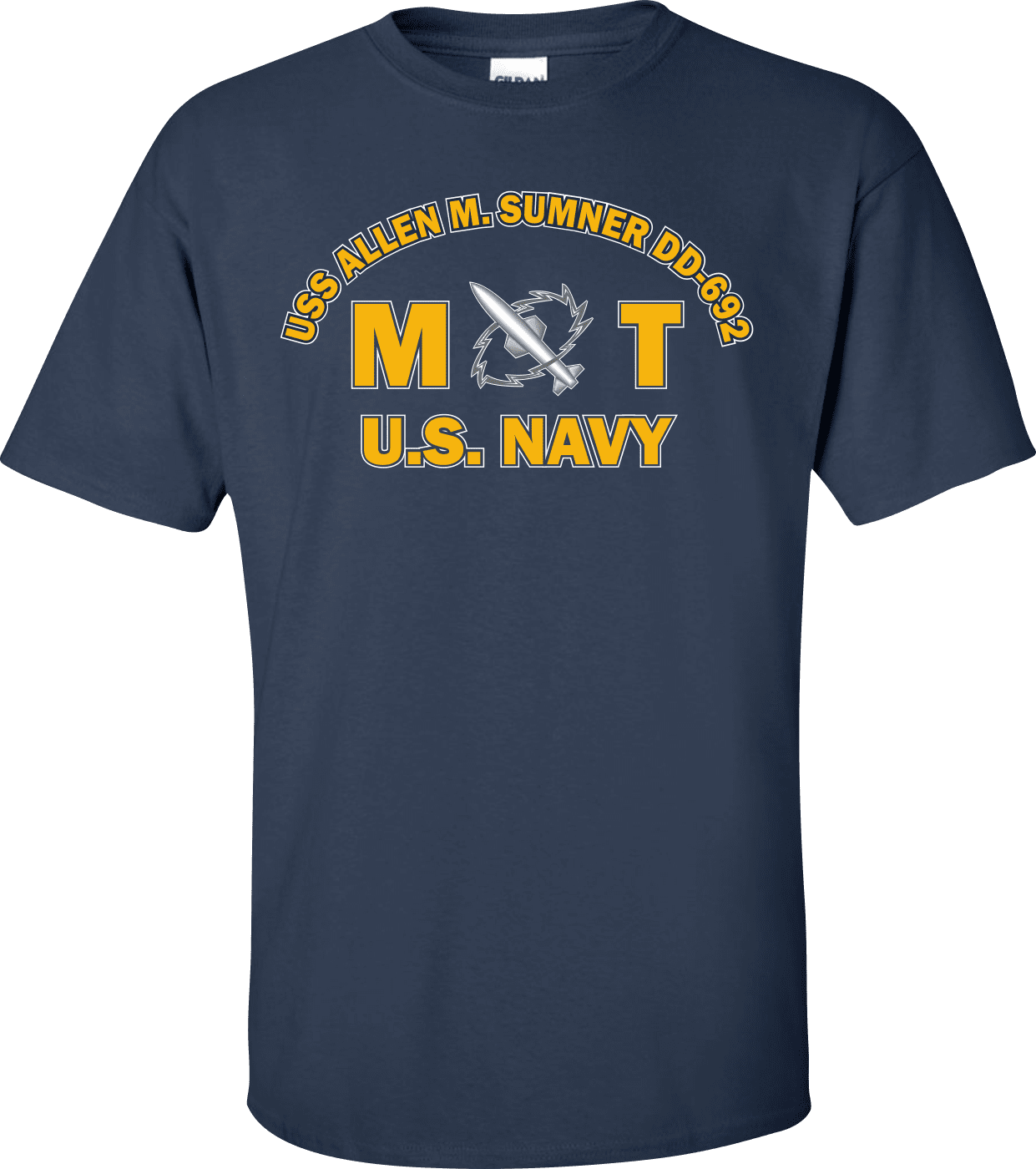 MilitaryBest is proud to offer this USS ALLEN M. SUMNER DD-692 Rate MT Missile Technician T-Shirt. This shirt is available as a 100% cotton t-shirt or a 100% polyester men’s or women’s moisture wicking t-shirt. Each shirt is proudly printed in the USA.