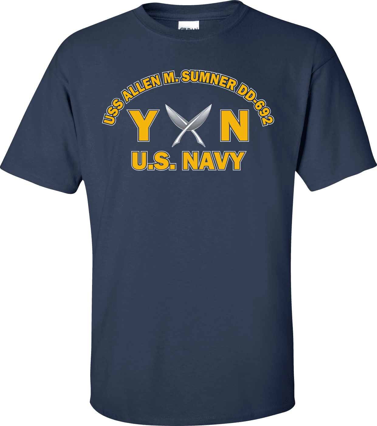 MilitaryBest is proud to offer this USS ALLEN M. SUMNER DD-692 Rate YN Yeoman T-Shirt. This shirt is available as a 100% cotton t-shirt or a 100% polyester men’s or women’s moisture wicking t-shirt. Each shirt is proudly printed in the USA.