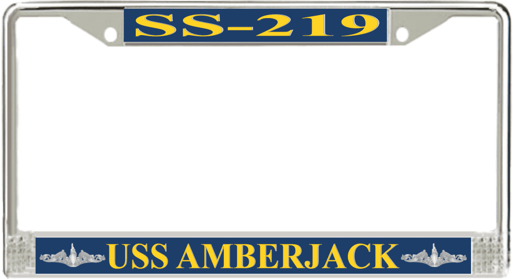 USS Amberjack SS-219 License Plate Frame This USS Amberjack SS-219 License Plate Frame is proudly made in the USA at our facilities in Scottsboro, Alabama. Each Frame features top and bottom sublimated design strips that are poly coated for a protective gloss finish. Please check your state and local regulations for compatibility of these frames for use on your vehicle.