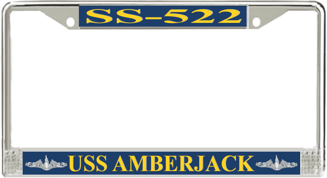 USS Amberjack SS-522 License Plate Frame This USS Amberjack SS-522 License Plate Frame is proudly made in the USA at our facilities in Scottsboro, Alabama. Each Frame features top and bottom sublimated design strips that are poly coated for a protective gloss finish. Please check your state and local regulations for compatibility of these frames for use on your vehicle.