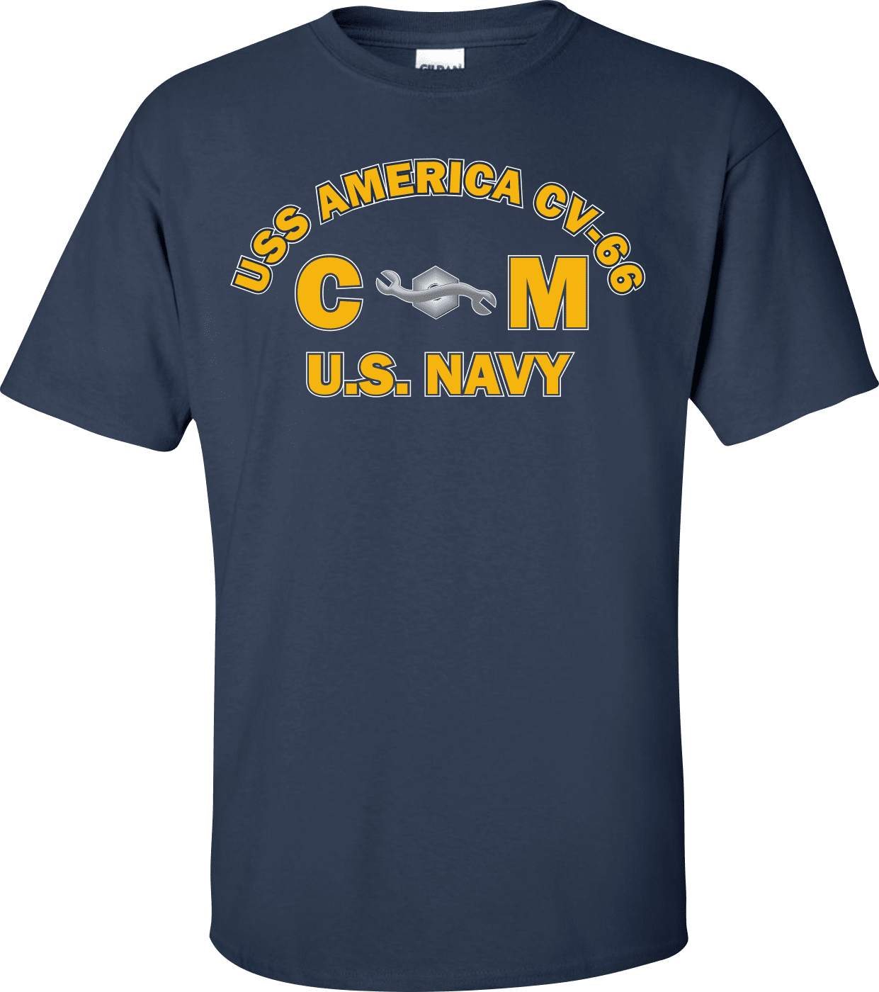 MilitaryBest is proud to offer this USS AMERICA CV-66 Rate CM Construction Mechanic T-Shirt. This shirt is available as a 100% cotton t-shirt or a 100% polyester men’s or women’s moisture wicking t-shirt. Each shirt is proudly printed in the USA.