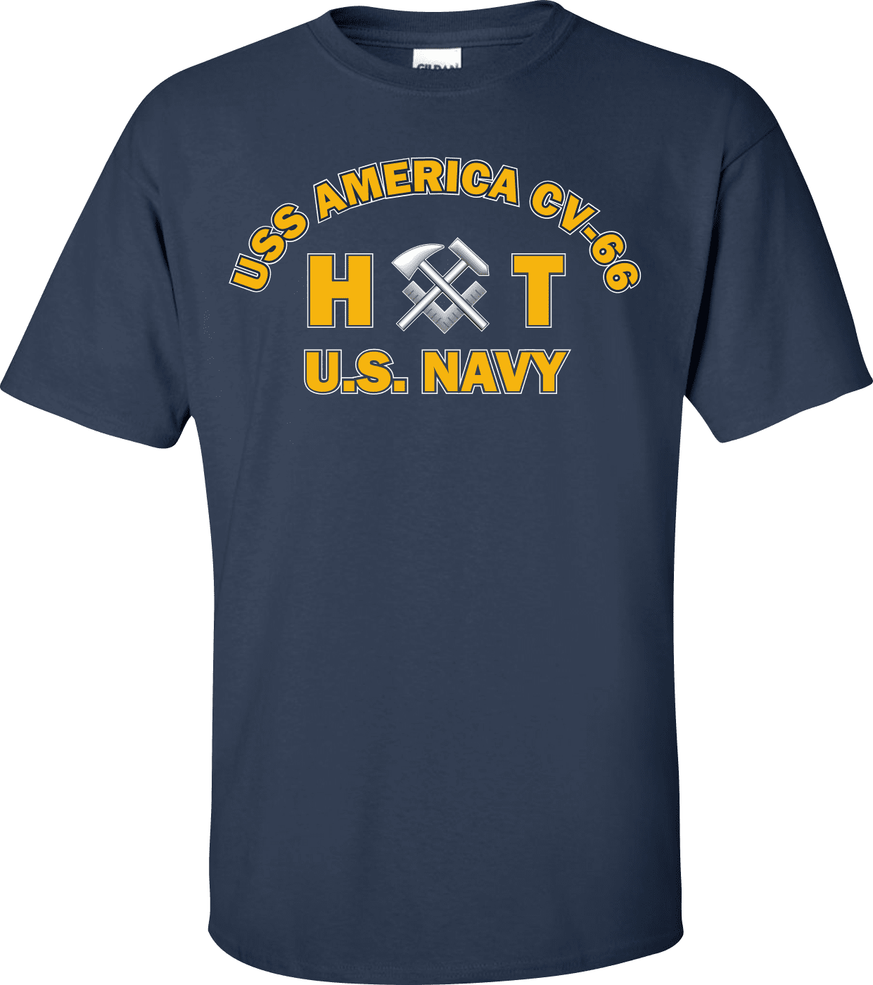 MilitaryBest is proud to offer this USS AMERICA CV-66 Rate HT Hull Maintenance Technician T-Shirt. This shirt is available as a 100% cotton t-shirt or a 100% polyester men’s or women’s moisture wicking t-shirt. Each shirt is proudly printed in the USA.