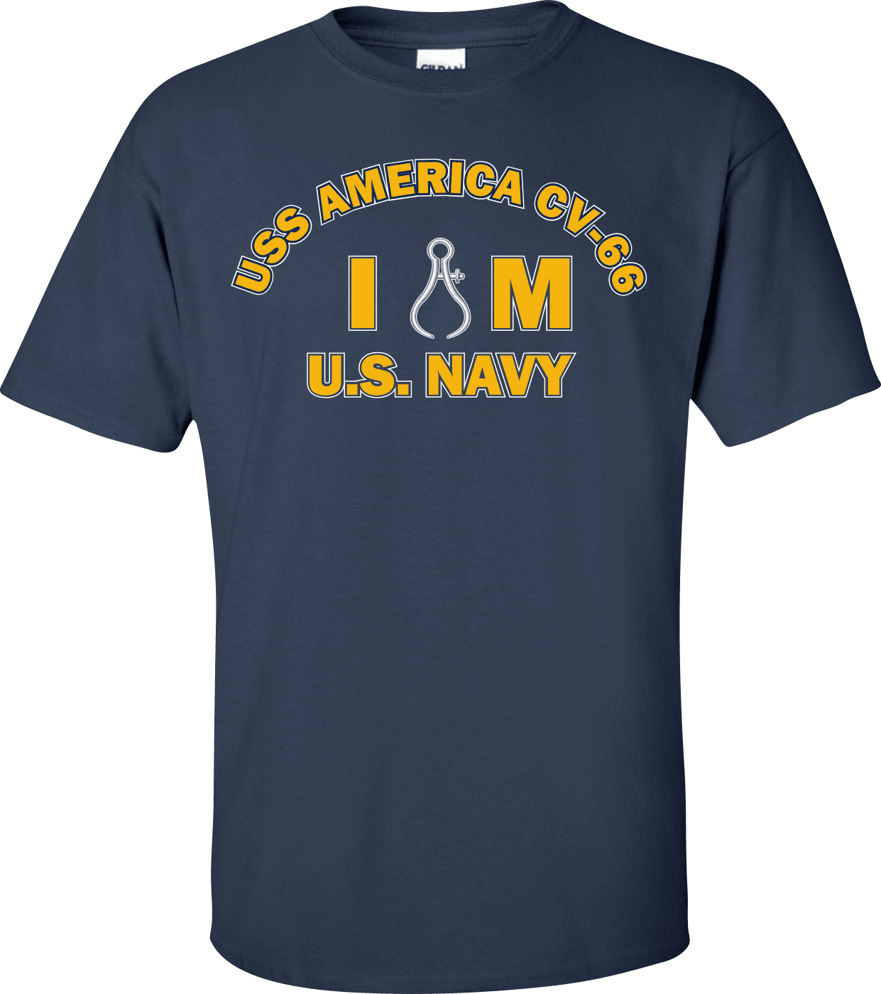 MilitaryBest is proud to offer this USS AMERICA CV-66 Rate IM Instrumentman T-Shirt. This shirt is available as a 100% cotton t-shirt or a 100% polyester men’s or women’s moisture wicking t-shirt. Each shirt is proudly printed in the USA.
