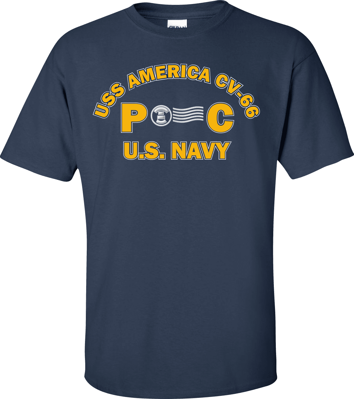 MilitaryBest is proud to offer this USS AMERICA CV-66 Rate PC Postal Clerk T-Shirt. This shirt is available as a 100% cotton t-shirt or a 100% polyester men’s or women’s moisture wicking t-shirt. Each shirt is proudly printed in the USA.