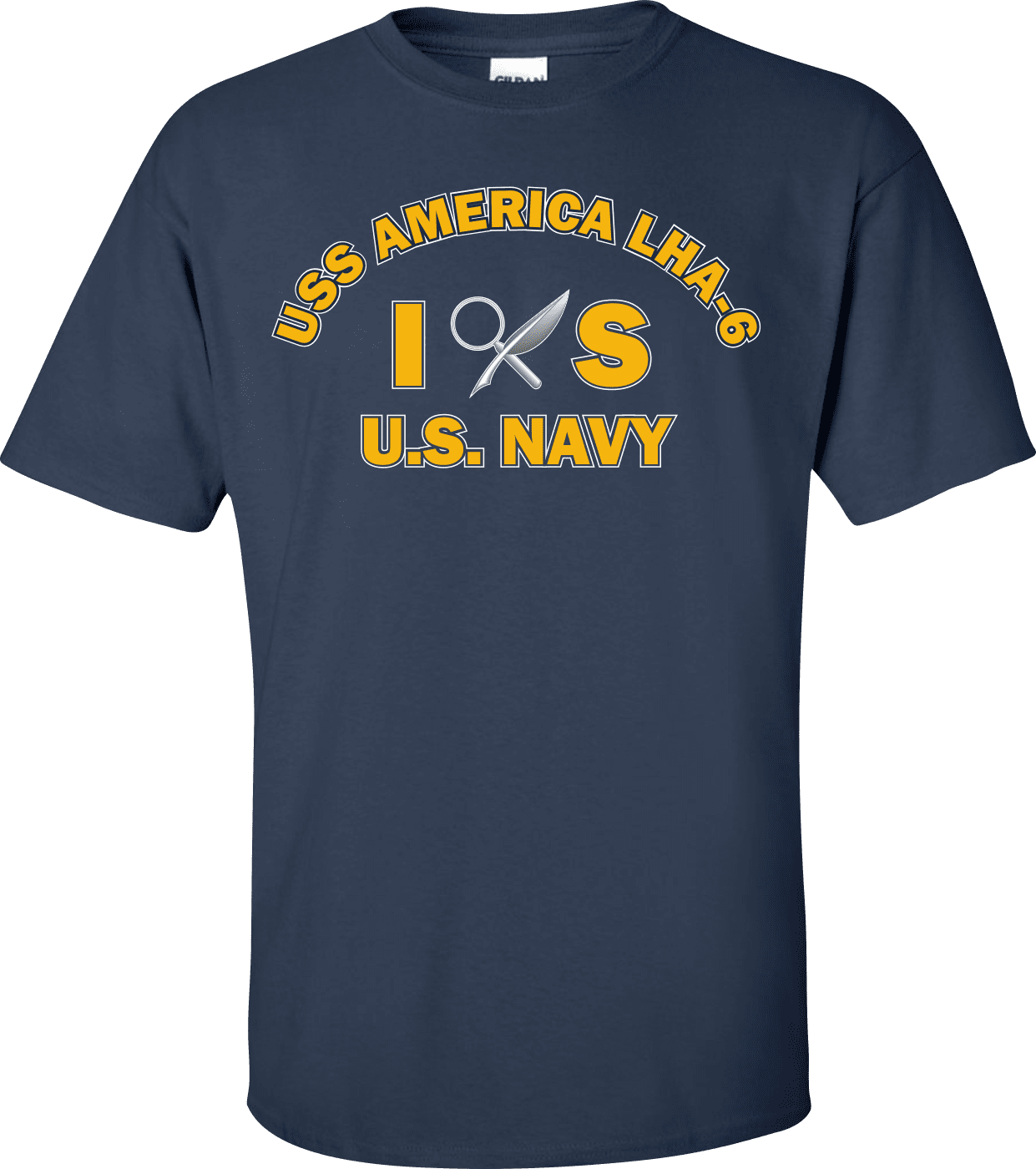 MilitaryBest is proud to offer this USS AMERICA LHA-6 Rate IS Intelligence Specialist T-Shirt. This shirt is available as a 100% cotton t-shirt or a 100% polyester men’s or women’s moisture wicking t-shirt. Each shirt is proudly printed in the USA.