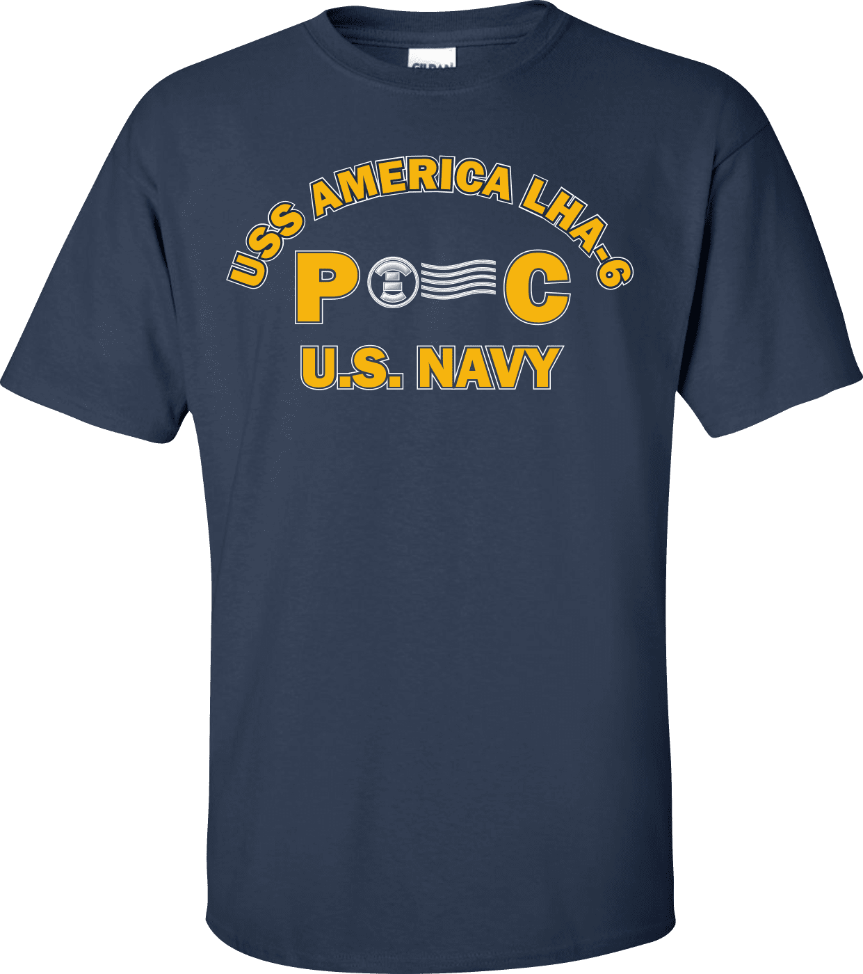 MilitaryBest is proud to offer this USS AMERICA LHA-6 Rate PC Postal Clerk T-Shirt. This shirt is available as a 100% cotton t-shirt or a 100% polyester men’s or women’s moisture wicking t-shirt. Each shirt is proudly printed in the USA.