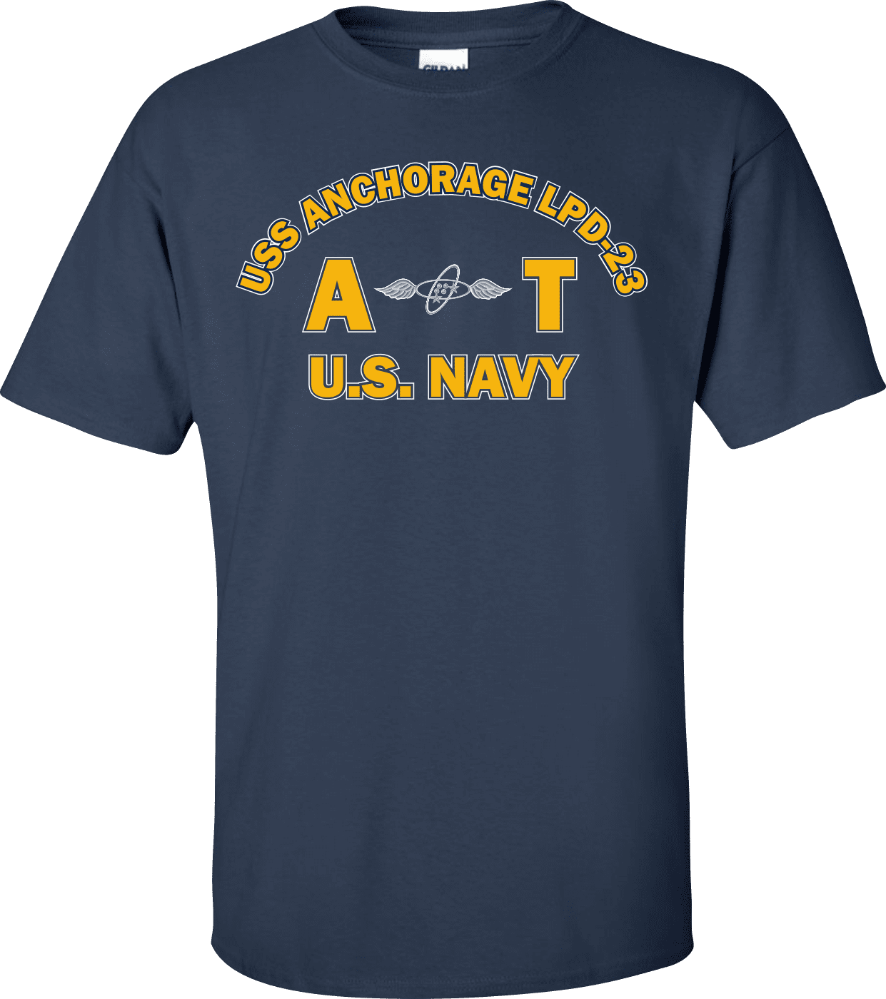 MilitaryBest is proud to offer this USS ANCHORAGE LPD-23 Rate AT Aviation Electronics Technician T-Shirt. This shirt is available as a 100% cotton t-shirt or a 100% polyester men’s or women’s moisture wicking t-shirt. Each shirt is proudly printed in the USA.