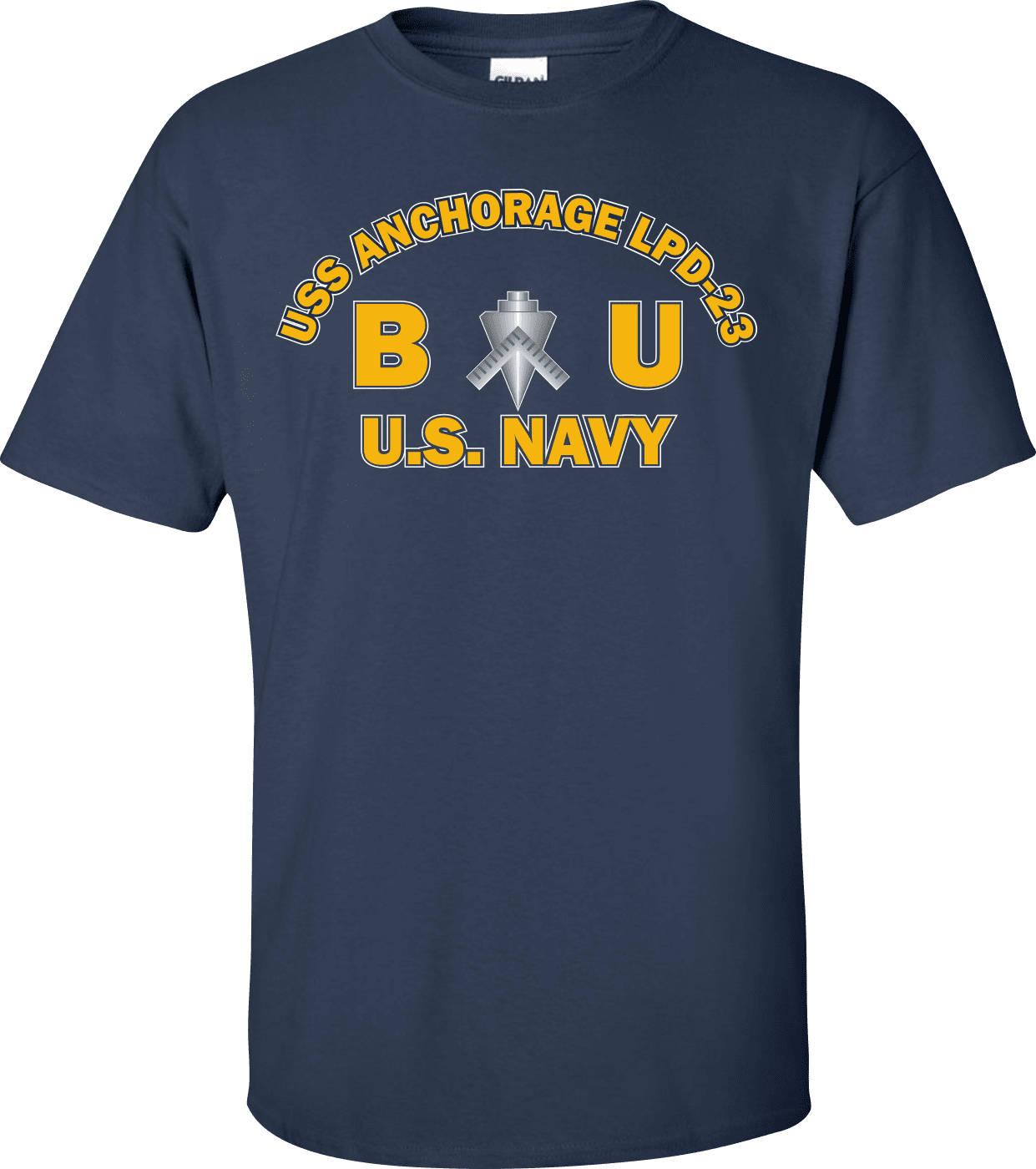 MilitaryBest is proud to offer this USS ANCHORAGE LPD-23 Rate BU Builder T-Shirt. This shirt is available as a 100% cotton t-shirt or a 100% polyester men’s or women’s moisture wicking t-shirt. Each shirt is proudly printed in the USA.