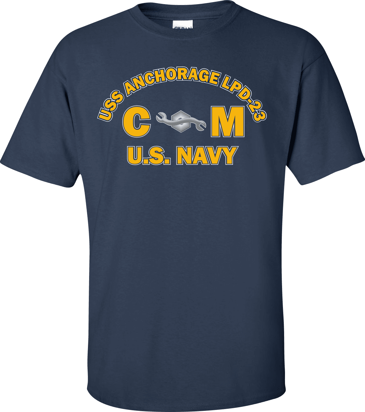 MilitaryBest is proud to offer this USS ANCHORAGE LPD-23 Rate CM Construction Mechanic T-Shirt. This shirt is available as a 100% cotton t-shirt or a 100% polyester men’s or women’s moisture wicking t-shirt. Each shirt is proudly printed in the USA.