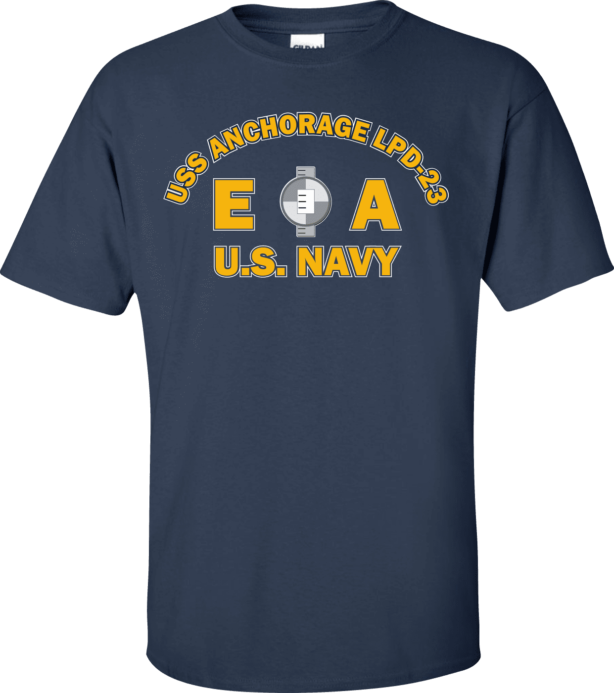 MilitaryBest is proud to offer this USS ANCHORAGE LPD-23 Rate EA Engineering Aide T-Shirt. This shirt is available as a 100% cotton t-shirt or a 100% polyester men’s or women’s moisture wicking t-shirt. Each shirt is proudly printed in the USA.