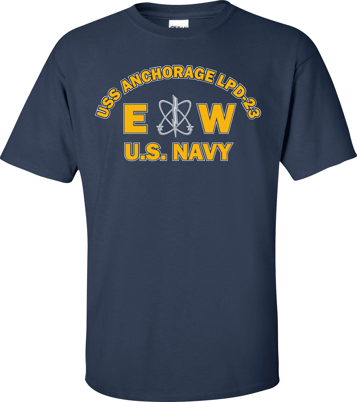 MilitaryBest is proud to offer this USS ANCHORAGE LPD-23 Rate EW Electronics Warfare Technician T-Shirt. This shirt is available as a 100% cotton t-shirt or a 100% polyester men’s or women’s moisture wicking t-shirt. Each shirt is proudly printed in the USA.