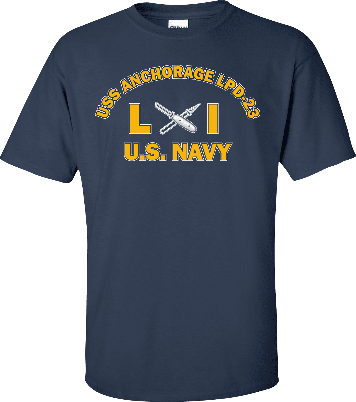 MilitaryBest is proud to offer this USS ANCHORAGE LPD-23 Rate LI Lithographer T-Shirt. This shirt is available as a 100% cotton t-shirt or a 100% polyester men’s or women’s moisture wicking t-shirt. Each shirt is proudly printed in the USA.