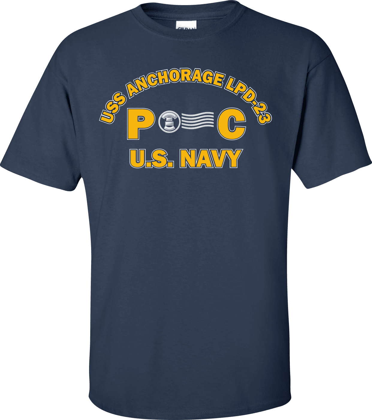 MilitaryBest is proud to offer this USS ANCHORAGE LPD-23 Rate PC Postal Clerk T-Shirt. This shirt is available as a 100% cotton t-shirt or a 100% polyester men’s or women’s moisture wicking t-shirt. Each shirt is proudly printed in the USA.