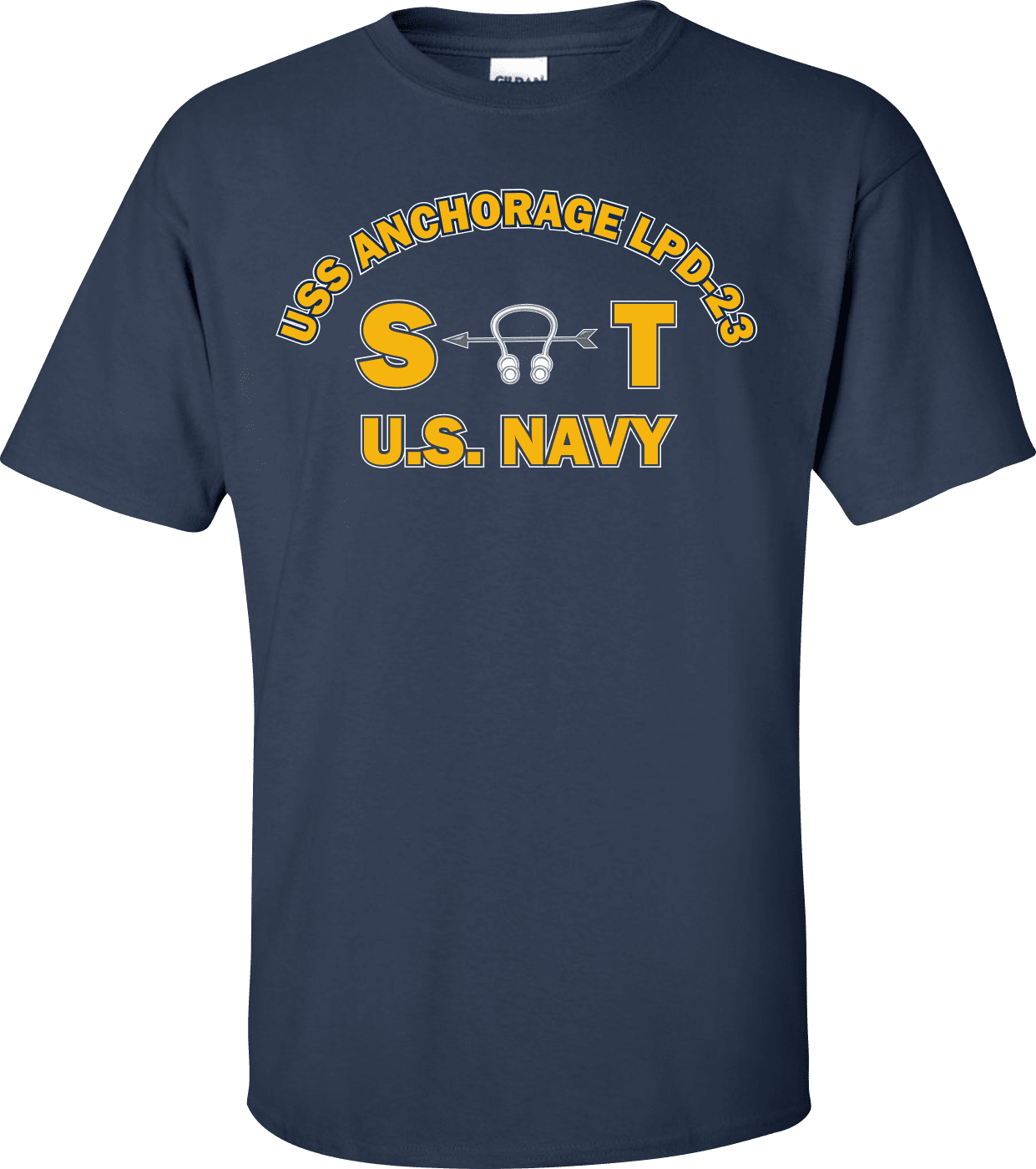 MilitaryBest is proud to offer this USS ANCHORAGE LPD-23 Rate ST Sonar Technician T-Shirt. This shirt is available as a 100% cotton t-shirt or a 100% polyester men’s or women’s moisture wicking t-shirt. Each shirt is proudly printed in the USA.