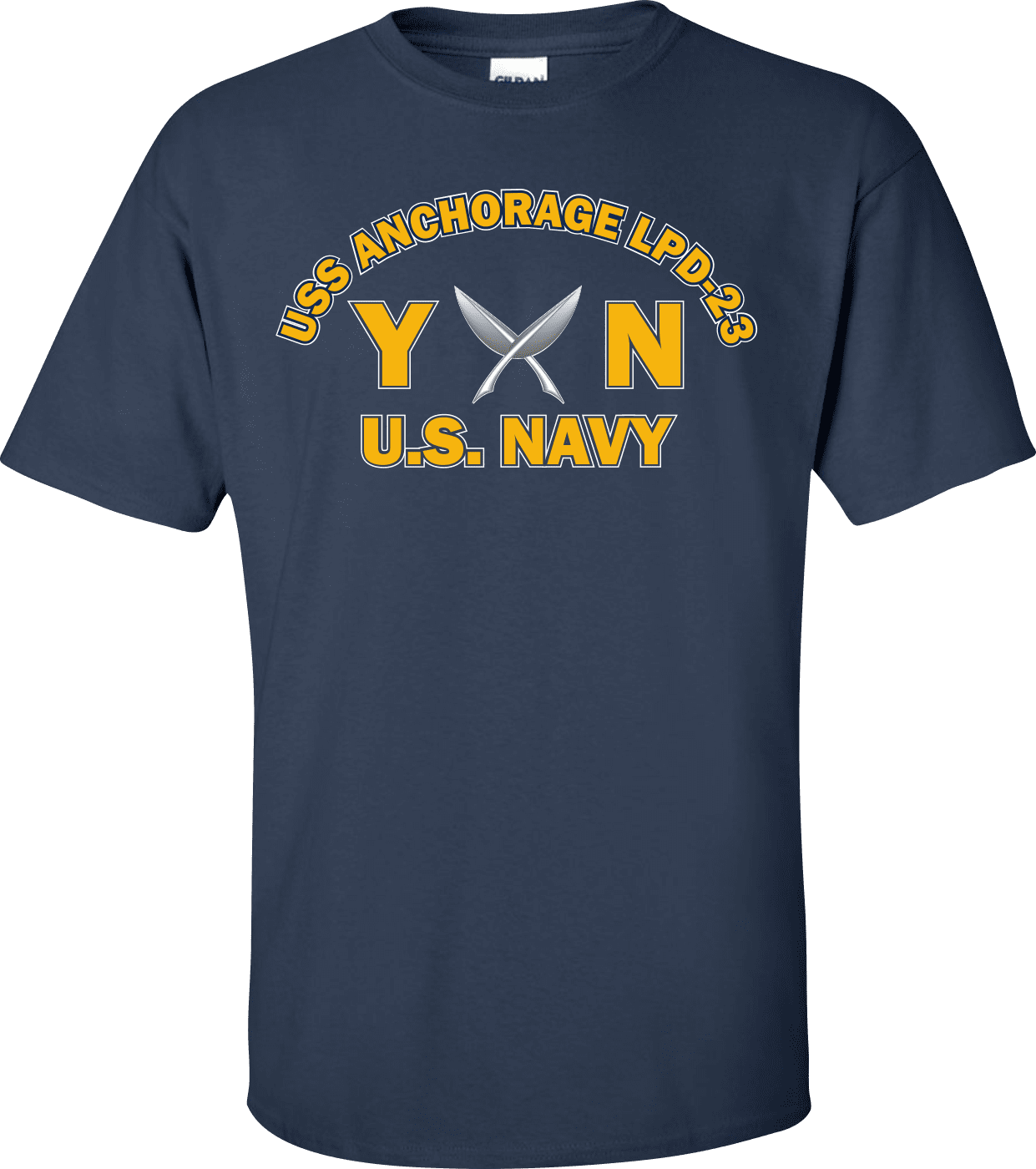 MilitaryBest is proud to offer this USS ANCHORAGE LPD-23 Rate YN Yeoman T-Shirt. This shirt is available as a 100% cotton t-shirt or a 100% polyester men’s or women’s moisture wicking t-shirt. Each shirt is proudly printed in the USA.
